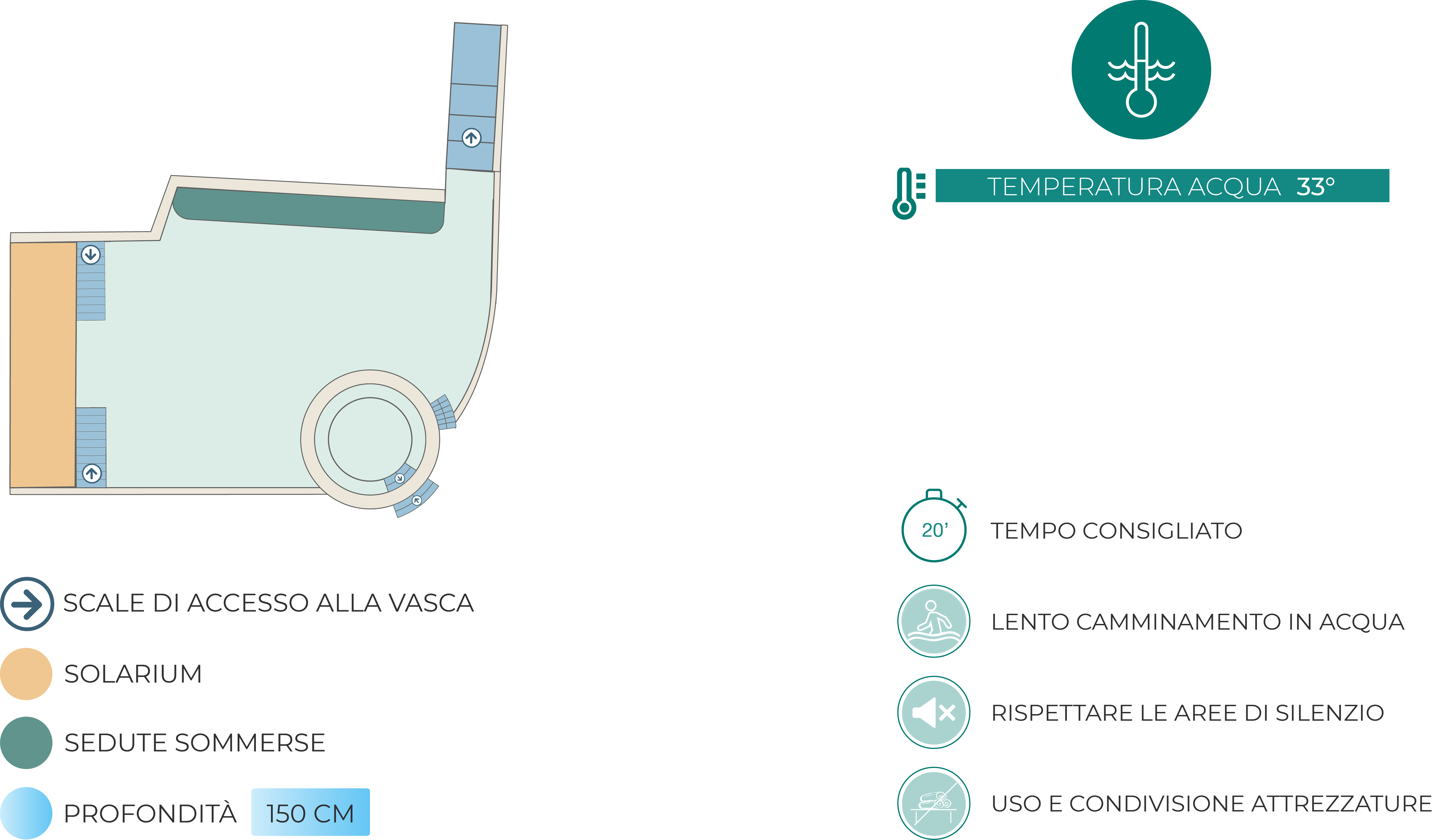 Ha una temperatura di circa 33° C ed è circondata da ombrelloni e lettini per distendersi